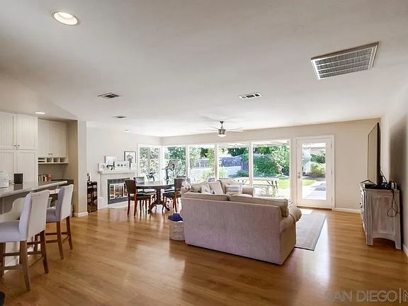 This pride of ownership, three-bedroom, two-bath, 1482 square-foot mid-century single-level home, is situated on a large corner lot. The house is infused with natural light, and features include large windows, across the back of the main living area, that look out onto the spacious and private backyard. The open concept chef’s kitchen has been beautifully remodeled along with the bathrooms. The main living area boasts gleaming wood floors. Additional features include, A/C, and Solar. Step outside and enjoy the spacious patio, and the lush landscaping, complete with fruit trees, and plenty of space to roam. Great location close to SDSU, restaurants, shopping, freeways, and everything that San Diego has to offer!