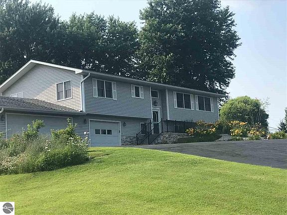 Open and spacious describes this over 2800 square foot home on 2.52 acres just minutes from downtown Traverse City. You will love the open concept kitchen/living/dining area on the upper level with large island and breakfast bar. Lower level has kitchenette, 3/4 bath, bedroom and family room/office space. Large deck with gazebo (included). Much of the yard is fenced in so perfect for pets or children. Fire-pit, vegetable garden and all new landscaping including perennials that were planted such that they provide constant color throughout the seasons. Three stall garage with added storage at the back (36' wide X 28' deep). New windows and roof shingles in 2001, partial roof redone and entire roof thoroughly inspected (July 2019). All new LED lighting throughout. The well pump was replaced in 2007, new furnace/ac in 2010. Septic pumped in 2018. New slider door in upper level dining area. New front entry door and metal railing at entry. Updated baths, additional 1/2 bath added on upper level. New flooring, lighting, paint. Lower level is completely new construction in 2017--new bathroom, new 11'x 10' kitchenette, new 11x9 family room and new 26x11 4th bedroom and 11.4x10 study/office . All new stainless appliances in kitchen. Washer and Dryer included. Total of 4 bedrooms and 2.5 baths. Lower level could easily be turned into separate apartment. Additional personal property available for purchase via Bill of Sale including rider mower, push mower and weed trimmer if interested. See associated docs for full list of improvements.