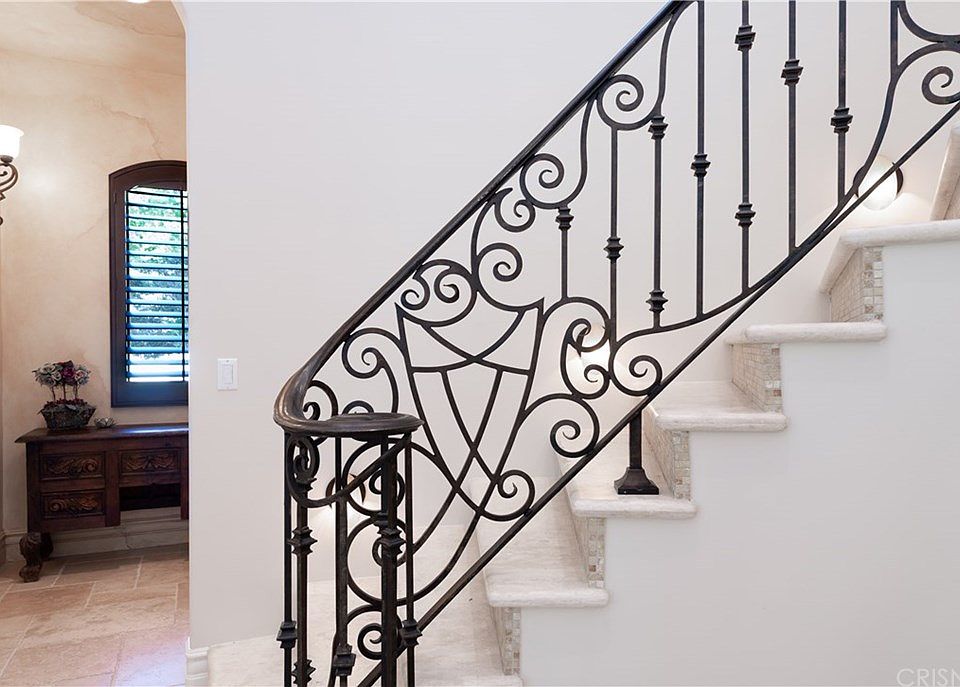 Beautiful, gated Tuscan south of the boulevard home is located in the prestigious Rancho Estates. Situated up a private road, this one of a kind estate features a circular driveway offering ample parking, privacy and serenity. Manicured landscaping invites you to a dramatic entry with massive wrought iron and glass doors. Enter the grand foyer which pours into separate dining and formal living rooms. The open floor plan gourmet chef's kitchen with dual-sink, granite top center island, mosaic backsplash and Viking Pro appliances flows seamlessly into a bar area and family room which overlooks the backyard. The main floor is completed with a powder room, office, maid's quarters (w/o closet) and bathroom. A curved regal staircase leads to 4 en-suite bedrooms upstairs, each with walk-in closet and balcony, including a master suite that features high ceilings, a fireplace, large master bath with steam shower and spa tub for two, grand walk-in closet, and spacious balcony. Owners have lovingly maintained this pristine 5 bedroom 5 ½ bath home. Additional features include: travertine stone, hardwood floors, 3-car garage, pool with spa, grassy yard, security gate entrance, walking distance to Ventura Blvd. shops and restaurants, and easy access to the 101/405 freeways.