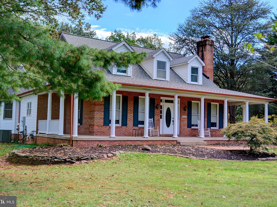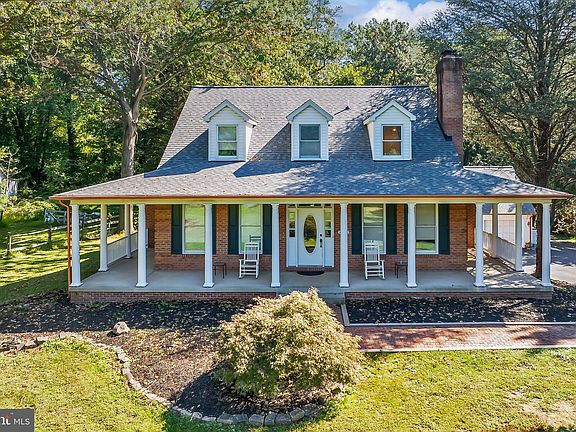 Welcome to this beautifully maintained Cape Cod residence, perfectly situated on a private and level .82-acre lot in a highly convenient Fairfax location. Offering timeless curb appeal with its wrap-around covered front porch and rear screened porch, this home provides the ideal blend of charm, comfort, and functionality. An architectural roof was installed in 2025, and the property also features a 28’x28’ detached garage with electricity and an upper level, plus extra parking and a wide asphalt driveway. Enjoy a private backyard with a concrete patio—perfect for entertaining or relaxing outdoors. Septic system upgraded with new tank and distribution boxes — ready for the future Inside, the main level boasts 9-foot ceilings and a welcoming marble entry. The formal living room is highlighted by floor-to-ceiling windows and crown molding, while gleaming hardwood floors flow throughout most of the main level. The gourmet kitchen was renovated in 2020 with stainless appliances, ceramic tile flooring, and opens seamlessly to the family room and a panoramic breakfast nook. Off the family room, an oversized screened porch with exterior TV extends your living and entertaining space. Additional conveniences include a main level laundry room and a luxurious primary suite featuring a walk-in closet, private balcony, and spa-like bath with jetted soaking tub, double vanity, shower, and water closet. Upstairs you’ll find three spacious bedrooms, including a princess suite with its own full bath, plus two additional bedrooms with a full hall bath. New carpet was installed in 2025, ensuring comfort and style. The finished walkout lower level is designed for recreation and relaxation. Highlights include a large rec room with wood-burning fireplace and solarium, a wet bar, a fifth bedroom with private full bath, and a bonus exercise room with sliding doors to the patio. Additional features include a gas water heater, gas heat, and HVAC system approximately 12 years old. This exceptional home is conveniently located just .4 miles to Brentwood Park, 1 mile to Costco, 1.5 miles to Fairfax Corner and Route 66, 2 miles to Fair Oaks Mall, and 5 miles to Fair Oaks Hospital. With its combination of architectural character, modern upgrades, and unbeatable location, this property offers a rare opportunity to enjoy both privacy and accessibility in the heart of Fairfax.
