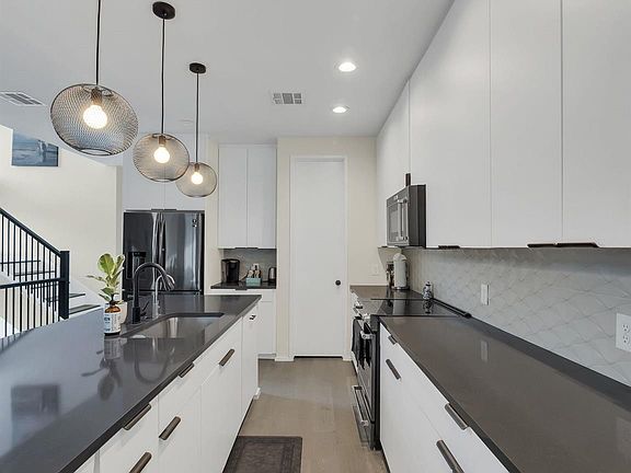 Modern Dallas residence features double master bedrooms, 3 full bathrooms, and versatile flex rooms ideal for an office or entertainment space. The open layout is perfect for hosting, and the downstairs area provides additional room for another office or gym. The home is equipped with sleek stainless steel appliances, black quartz countertops, and an array of smart home features, including a refrigerator with SmartThings integration, smart lock, MyQ smart garage, and automated blinds for added convenience. Specialty bidet outlets have been configured, enhancing the home's functionality, while motion-activated lights in closets and bathrooms, a 7-stage reverse osmosis system, and UV-reducing window film provide extra comfort and privacy. The private yard is ideal for dog owners, and the spacious 2-car garage adds additional convenience. Situated just steps from Dallas's best restaurants, bars, and nightlife, this residence combines privacy, modern luxury, and vibrant city living.