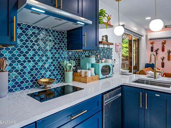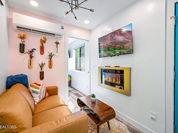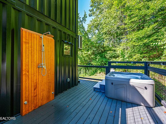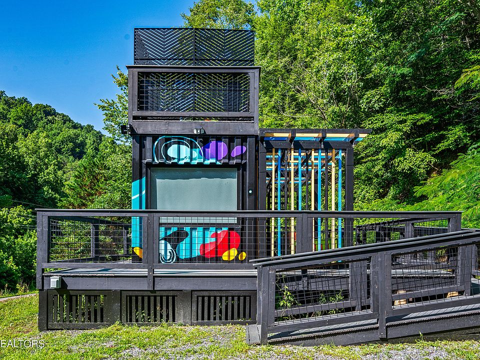 UNIQUE AND UNFORGETTABLE = REVENUE IN THE SMOKIES!! Welcome to ''The Bruin Bin'', a one-of-a-kind, one bedroom plus loft, CONTAINER cabin retreat, designed for those craving both style and soul. Tucked away just minutes from Gatlinburg, Douglas Lake, and the trails of the Great Smoky Mountains National Park, this custom-built getaway is more than a cabin-it's an experience. Packed with thoughtfully added design detail in this tiny dynamo, this retreat is sure to create the perfect romantic escape: *Retro-modern kitchen with navy cabinetry, gold hardware, mint appliances, and even a record player * Mid-century style bedroom with large windows, a plush queen bed, and just the right vibe for cozy nights in *Lofted sunken bed (loft area is not included in square footage but adds additional space) with private rooftop deck access, ideal for stargazing and moonlit conversations *Design-forward spiral staircase also allows access to the rooftop patio from the lower deck *Spa-inspired bathroom with rainfall shower and luxe finishes *Outdoor swing bed for morning coffee or sunset wine under the trees *Private Outdoor shower and hot tub for the ultimate back to nature retreat *Mini golf and corn hole for fun on the front lawn. From the cozy fireplace, hand-picked local art and custom mural, you'll see right away this is no ordinary property! The Smokies are one of the top honeymoon destinations in the U.S., and this cabin has everything your guests are looking for in a short-term rental--style, intimacy, and an unforgettable setting. And when it's time to explore, you're only 5-6 minutes from the Cosby entrance of the Great Smoky Mountains National Park with its hiking trails and waterfalls. Gatlinburg and all the tourist attractions are a short drive away on easy, paved roads. Best of all, this delight is being sold fully furnished and turnkey. The hard work is already done--the sellers navigated all the red tape, secured full permitting, passed inspections, and created a rare, regulation-approved container home in the Smokies. Now it's ready for you to step in and make it a standout short-term rental investment or your own personal retreat.
