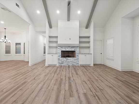 This stunning 4-bedroom, 4.5-bath home built by Richard Webb in 2021 offers the perfect blend of modern luxury and timeless craftsmanship in the desirable Lakeridge Estates. Practically new, this home features an open-concept layout with soaring ceilings, elegant finishes, and an abundance of natural light throughout. The gourmet kitchen is designed for entertaining, complete with a large island, custom cabinetry, and premium appliances. The spacious living area flows seamlessly into the dining space and out to a covered patio with an outdoor fireplace—ideal for relaxing or hosting guests. The isolated primary suite provides a private retreat with dual vanities, a free-standing tub, and two walk-in closets. Each additional bedroom features its own en suite bath, offering privacy and convenience for family or guests. Beautifully landscaped front and back yards create impressive curb appeal and low-maintenance enjoyment. Located within Lubbock-Cooper ISD and close to shopping, dining, and major roadways, this home combines style, function, and location in one exceptional package.
