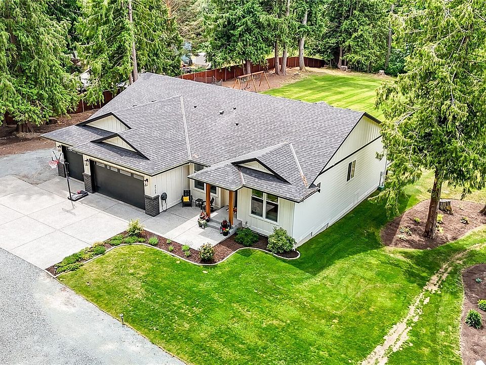 Experience the perfect blend of private country living & modern luxury in this beautiful 2023-built rambler, peacefully tucked away at the end of a private drive on a secluded 1.19-acre lot. This 3 bed, 2.5 bath home w/ large office boasts vaulted ceilings & a bright, modern kitchen featuring quartz countertops, SS appliances, walk-in pantry & oversized island perfect for entertaining. Spacious primary suite offers a luxurious bath complete w/ freestanding soaking tub. Enjoy year-round comfort w/ central AC & a luxury 8 person hot tub. Outdoor highlights include a covered Trex deck, 20x22 powered steel shop, garden area w/ plumbed water, 3 car garage & RV/boat parking. Prior county-approved plans for a potential ADU adds future potential.