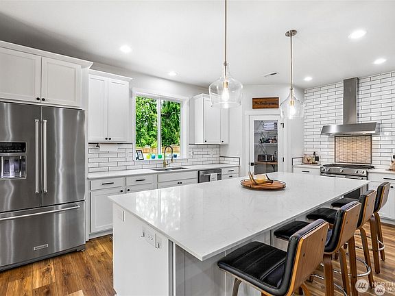 Powered steel shopModern luxuryBright modern kitchenOversized islandSpacious primary suiteFreestanding soaking tubLuxurious bath