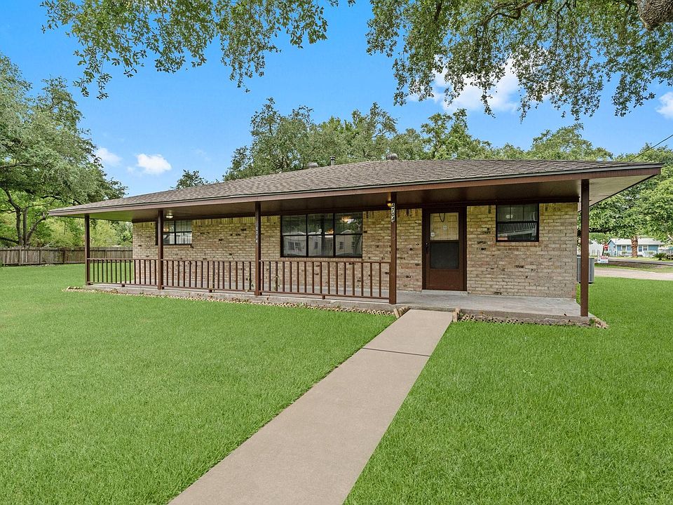 Do not miss this incredible opportunity to live in the beautiful neighborhood of Clifton by the Sea! Welcoming home and garage apartment w/kitchen (can be used for adult children or rental income) has large yard with lovely trees, front porch and back covered pavilion to enjoy outdoor living/grilling. Home has spacious living room and the kitchen has a great amount of storage with shelves and cabinets. Impressive amount of counter space and area for stools. Huge laundry room with large sink - great feature. Primary bedroom has multiple closets, as well as Bedroom 2. Bathroom has tub/shower combo with glass shower door enclosure and vanity with cabinets. Another great feature is an additional room that could be used as office, playroom, storage room, or anything. The adjoining lot is available to purchase as well! Fabulous location with close proximity to Clifton Beach, Eagle Point fishing marina and minutes away from the Kemah Boardwalk! Not to mention the Galveston cruise terminals.
