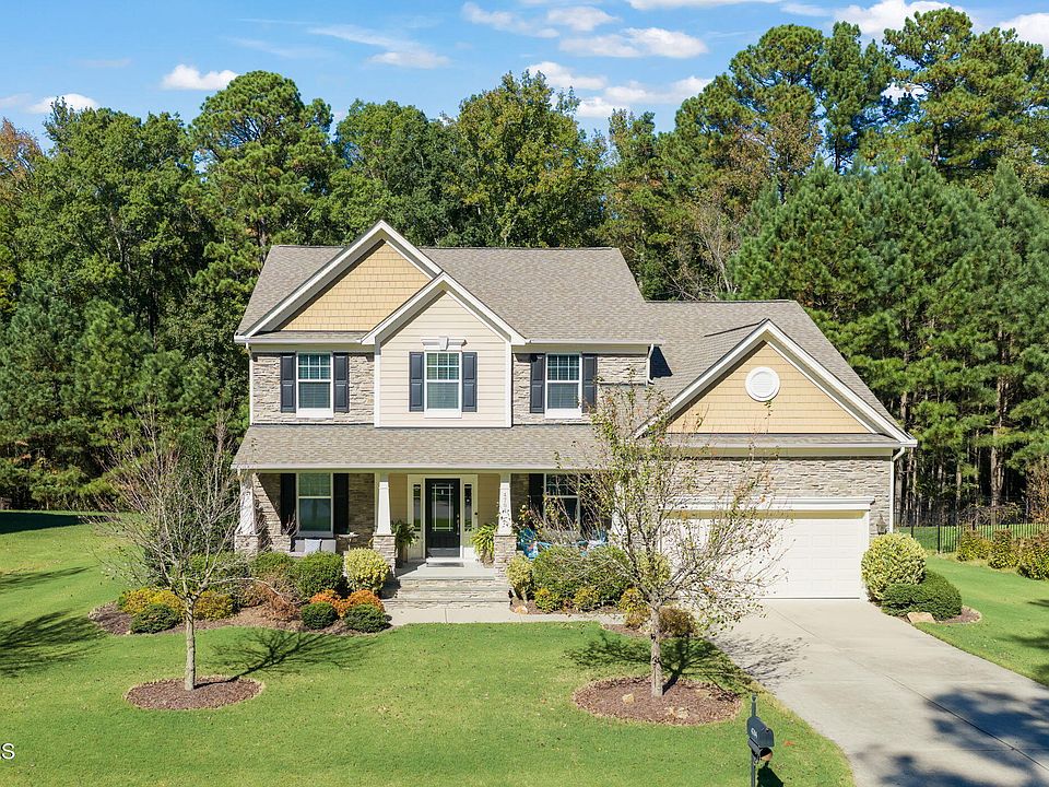 This is a rare chance to own a beautifully maintained Craftsman home on a generous .40-acre lot backing up to HOA owned forest land. Tucked away in a quiet community yet just minutes from Duke University and downtown Durham, it offers that hard-to-find mix of privacy and convenience. The layout is as functional as it is inviting. A main-level primary suite with well appointed bath provides a peaceful escape, while the open living room and kitchen - complete with large island, granite counters, double ovens, gas range, and a sunny breakfast nook - make everyday living easy. Walls of windows bring in natural light and frame views of the trees beyond. A formal dining room is ready for holiday gatherings, and the gas-log fireplace is perfect for curling up on cooler evenings. Upstairs, you'll find four bedrooms, two full baths, and a huge loft/bonus room, giving everyone in the household space to spread out. Outdoors, there's a welcoming front porch for neighborly chats and a back deck that's ideal for grilling, birdwatching, or simply relaxing. This home has been thoughtfully cared for with a new roof (2022), new HVAC (2022), and freshly painted deck (2025). The neighborhood itself is a gem, with sidewalks for evening strolls and easy access to miles of Duke Forest trails. Commuting is effortless with quick connections to RTP and RDU; but with everything this home offers, you may not want to leave.