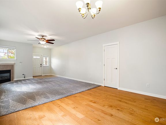Pride of ownership is evident in this impeccable home at the Reserve at Cordata. Lovely two story, three bedrooms with primary bedroom on main level, two car garage, low maintenance front yard. New furnace and air conditioner, washer, dryer, microwave, carpet, new floor in utility room Solar energy for greatly reduced monthly PSE bills. Home backs up to lush greenbelt for privacy while sitting on the deck in the fully fenced back yard. Storage building in back yard and gas plumbed at the outdoor patio. Ready for you to move in!