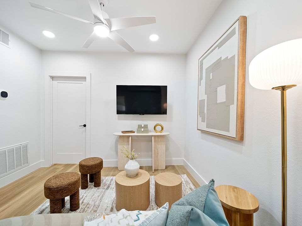 Discover Mediterranean Villa Vibes #2, a beautifully designed long-term rental located in the heart of East Downtown. Mediterranean-inspired architecture with modern comfort, featuring high ceilings, natural light, and an open-concept living area ideal for working from home or entertaining. The kitchen comes fully equipped with stainless steel appliances, quartz countertops, and ample cabinet space.