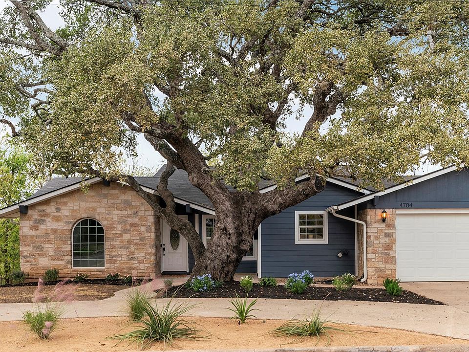 Beneath the canopy of a majestic heritage oak, this Western Trails hidden gem offers a rare blend of privacy, character, and convenience in the heart of South Austin. Just minutes from downtown and the airport, it's walkable to neighborhood favorites like Central Market, Cork & Brew, and El Chilito. Inside, the single-story layout offers three bedrooms, two baths, two living areas, and a dedicated office/bonus room. The open main living space combines the family room, dining area, and kitchen into one welcoming hub. Vaulted ceilings, wood-look floors, and the glow of a limestone fireplace anchor the space. A second living room, framed by two sets of French doors, opens to the back deck, a perfect spot for watching the weather roll in or Williamson Creek come alive after the rain. The office is designed to inspire, wrapped in windows that bring the outdoors in, while the primary suite includes its own ensuite bath and a walk-in closet generous enough to feel like another room. In 2019, the home underwent significant efficiency upgrades through the Austin Energy Efficiency Program, including a new HVAC system, ductwork, insulation, and water heater—providing modern comfort and peace of mind for years to come. Out back, the property feels worlds away from the city thanks to the creek at its edge and the expansive deck shaded by mature trees, a peaceful perch to watch the sun set through the trees or wildlife wander by. With .42 acres, direct creek access, and single-family zoning that preserves the neighborhood’s character, this lot is one of the best in Western Trails. It’s a private, nature-filled retreat with unbeatable convenience to everything Austin has to offer. Buyer to verify all info.