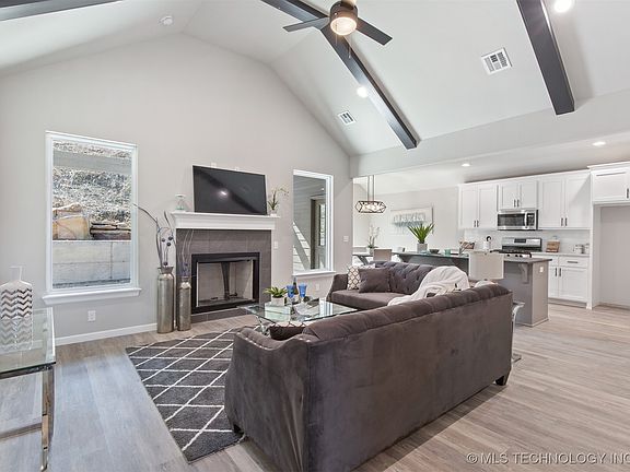 Beautiful home in a quiet tree-lined neighborhood just minutes from downtown Tulsa. Vaulted ceilings and large windows let in lots of natural light. LVP flooring throughout main living area and baths. Spacious primary bed and bath with dual sink vanity. Rear covered porch. Lots of extras--gas fireplace, granite throughout, soft close Shaker cabinets, built-in entryway drop zone, LED lighting. 1 year home warranty.
