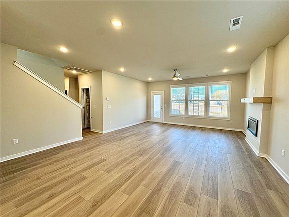 Fence, blinds and gutters included! Discover your dream home in the sought-after Osage Hills neighborhood. Frisco plan with garage on the left and East facing! 9 ft ceilings, linear electric fireplace, LVP flooring throughout the main living areas and primary bedroom, quartz countertops and more. Chef's kitchen boasting frigidaire stainless steel appliances, gas range, pantry, quartz countertops, bar pull handles, large island and gorgeous backsplash. Luxurious primary bedroom features abundant natural light, while the spa-like primary bathroom offers a walk-in shower, tub, double sinks, and spacious walk-in closets. Additional features include three large secondary bedrooms upstairs and a separate laundry room. Nestled on a generous lot with covered patio that overlooks the serene sodded, fully fenced backyard. Sturdy concrete siding & brick! Model home located at 6008 SW Coywolf St- Lot 122.