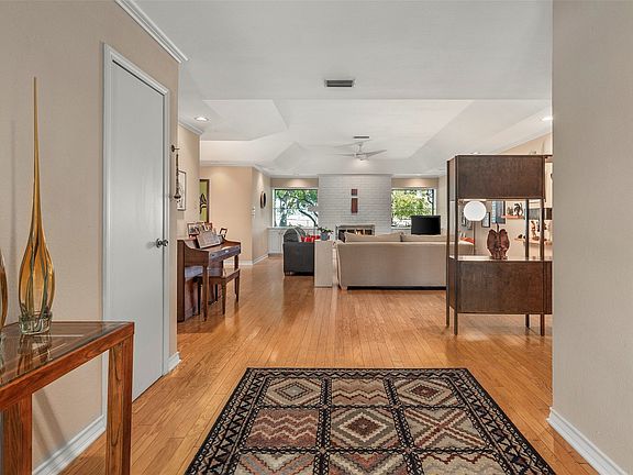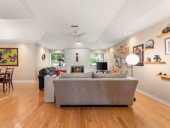 Unparalleled views of the Trinity River and Trinity Trails set the stage for this serene one-story home. Tucked away on a premier cul-de-sac lot in the Woods of Overton Woods, providing lush surrondings. Inside, the spacious layout is warm and inviting. The large living room centers around a fireplace and features wood floors and windows that frame breathtaking river views. The living room flows seamlessly into the dining area, which connects to a well-appointed kitchen with granite countertops, abundant cabinetry, and a breakfast room with built-ins. A second cozy living room extends from the breakfast area, offering expansive views of the backyard, Trinity River and immediate access to the Trinity Trails. The private primary suite includes an ensuite bath with dual sinks, a large shower, and two walk-in closets. Two additional bedrooms, each with walk-in closets, provide comfort and versatility. Ample storage is thoughtfully incorporated throughout the home. Outdoors, a patio shaded by mature trees creates a picturesque setting to relax or entertain while overlooking the serene backdrop of the river and trails. Enjoy walkability to the Trinity Trails, restaurants, shopping and more.