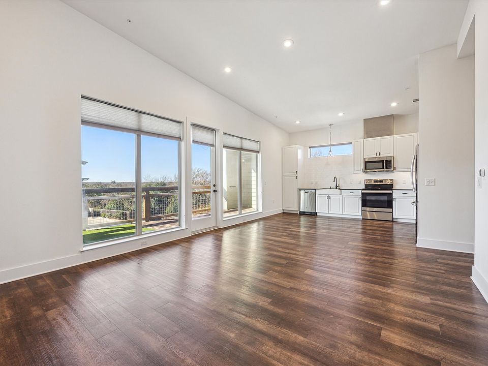 Welcome to your home at The Grange, a gated community with resort style pool built in 2018. Take the stairs or elevator up to this light filled, top floor oasis. From your massive balcony enjoy a view of the dazzling pool. Inside you'll take note of the tall ceilings, open layout, beautiful farmhouse sink, stainless steel appliances, and oversized primary shower, just to name a few of the thoughtful upgrades. Community amenities include a pool, BBQ area and dog park. Enjoy living walking distance from Central Market, Black Swan Yoga, Movie Theaters, Juiceland, Saps, Westgate Transit Center and much more. Easy access to 71, 360, Mopac, and I35. Unit includes 2 covered, reserved parking spaces as well as ample guest parking. 12 month lease preferred. Tenant pays all utilities.