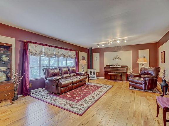 Beautiful Unique 1750 sf ranch home with attached 1100 sf ranch apartment. Main house has 3 beds, 2 full baths (master suite), kitchen (refrigerator, dishwasher, microwave, electric oven range), dining room, family room, living room and more closet space than you'll ever need. Country kitchen has open flow into family room; living room has pegged hardwoods and gas stove. The 1st floor laundry connects the larger ranch home to the apartment with separate entrance, and separate gas and electric. The apt. eat-in kitchen is equipped with a refrigerator, gas oven range and microwave, large living area with gas fireplace, two beds and a full bath, which is perfect for guests, older teens, in-laws or a separate work space. The finished 525sf basement rec room has a gas fireplace. This 2+ acre parcel has a gorgeous stocked pond with dock and fountain for year-round enjoyment of your own paradise. Home Warranty Provided. Showings begin at Open House on Sunday, November 1, 2020 at 11:00 a.m.
