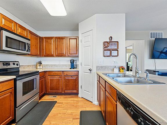 *Property qualifies for 1% lender credit credit. Reach out to the Listing Agent for more details.* Well-maintained, move-in ready home with 3 bedrooms and 2 baths. Highlights include two separate living areas, a bonus second-floor balcony, and a spacious, fenced backyard with a lawn area for pets and play, as well as a concrete patio for lounging and hosting BBQs. Love to garden? Custom-built planters out front are HOA-approved and offer you unlimited options to grow your own flowers, veggies, and plants. Recent upgrades include A/C added in 2021 to keep you cool and comfortable during Colorado's warm summers, plus a brand-new roof (April 2025) with Class 4, impact-resistant shingles for extra peace of mind. This home is ideally located just 15 minutes from DIA, 20 from downtown Denver, and less than five from the Green Valley Ranch Rec Center. A variety of restaurants, coffee shops, and breweries are all within easy reach as well. A great home at a great price! Come take a look today.