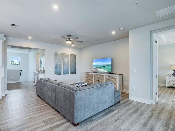 Screened balconyKitchen boasts an islandQuartz countertopsSpacious floor planStunning swfl sunsetsOutdoor fire pitElegant white cabinetry