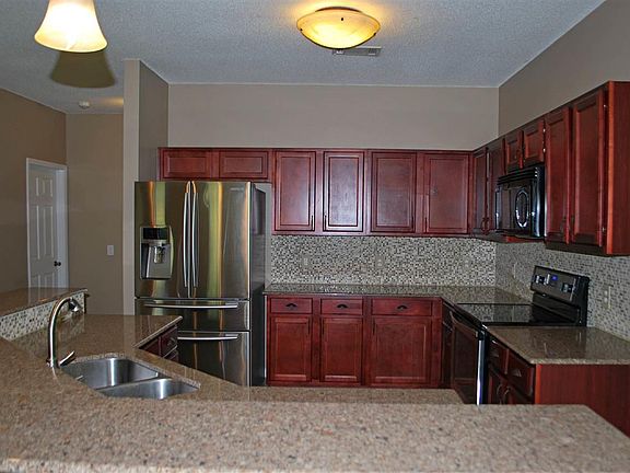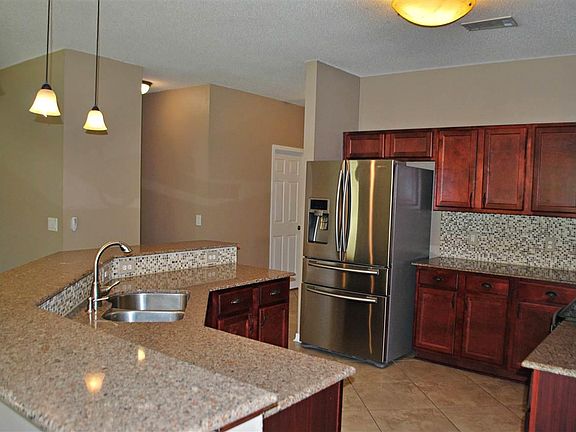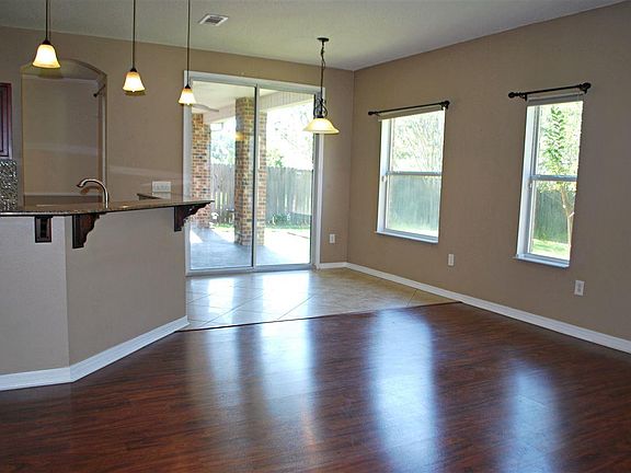 Beautiful brick home on the edge of a cul-de-sac, this property has amazing upgrades and updates throughout! Split floor plan with an additional sitting room and office/den area. The kitchen has all stainless steel appliances, granite countertops, mosaic backsplash, wood cabinets and 18" porcelain tile. Master bedroom has its own suite with dual vanities, granite counter tops, tile flooring, garden tub, and a walk in shower that has both tile and stone. Inlayed stone accent surrounds the vanities with updated fixtures throughout. Pristine landscaped yard in both the front and back with a covered back porch ideal for entertaining. Home has plantation shutters covering the front windows. Features electric furnace, electric water heater and an HVAC system that has been inspected prior to listing. Home is already wired for a security system through ADT. Privacy fenced yard with a greenbelt directly behind the property. Home is termite bonded and has hurricane protection shutters to include the back porch. Seller will pay 4000.00 of buyers closing costs with a full price offer. ~Close to the interstate and shopping~ **** Buyer to verify all dimensions and features. ****