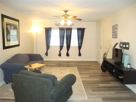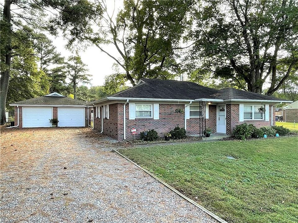 All brick 3 bedroom ranch with 625 sq. ft. detached 2+ car garage. Open living area. Updated kitchen with new white shaker cabinets, countertops, backsplash and sink. New waterproof LVT flooring throughout main living area. Separate utility/mud room. Screen porch overlooking big fenced backyard. Wide driveway will hold 6+ cars. Less than 3 miles from U.S. Coast Guard base - no bridges or tunnels! Less than 6 miles to Portsmouth Naval Hospital. Architectural roof approx. 7 years old. HVAC approx. 9 years old. Replacement windows.