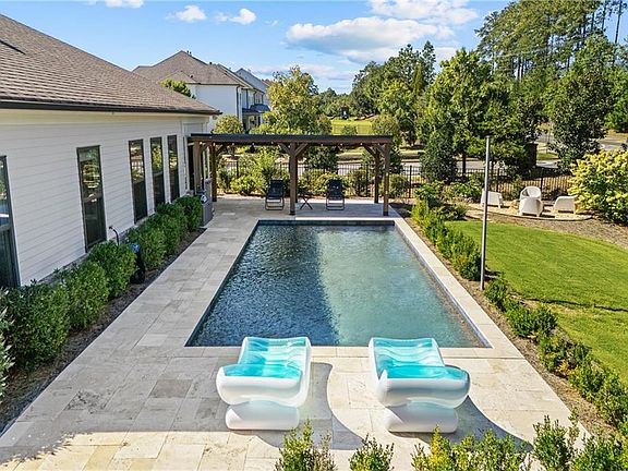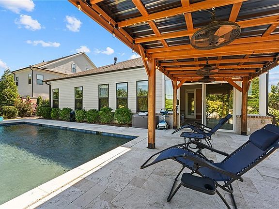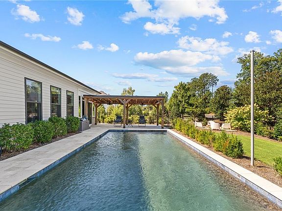 EXCEPTIONAL VALUE at an EXCEPTIONAL PRICE in the sought-after Traditions community! Experience a rare ranch estate that seamlessly blends timeless elegance with thoughtful modern upgrades. The expansive main living areas open through French double doors, creating a harmonious connection between indoor comfort and outdoor luxury. Step outside to your fully automated saltwater PebbleTec pool, complete with dual in-pool LED lighting and surrounded by elegant travertine decking—ideal for lively evenings of entertaining or serene moments of relaxation. Located in the highly desirable Traditions neighborhood within the acclaimed Forsyth County school district, this home offers unmatched convenience paired with elevated living. The main-level primary suite features trey ceilings, dual vanities, a deep soaking tub, seamless glass shower, and a spacious walk-in closet. Two additional bedrooms and a full bathroom provide comfort and flexibility for family or guests. At the heart of the home is a gourmet kitchen equipped with stainless steel appliances, double ovens, built-in microwave, quartz countertops, a large center island, custom walk-in pantry, and a butler’s pantry with wine refrigerator. The open layout flows effortlessly into the family room with a cozy gas log fireplace and continues to the formal dining room—perfect for hosting gatherings. Additional features include a three-car garage with epoxy-coated flooring, iron fencing, a climate-controlled sunroom with sliding windows and doors, and extensive outdoor living spaces. Enjoy a poolside cabana with projector screen and roller shades, built-in firepit, and dedicated garden area. Throughout the home, you’ll appreciate 10-foot ceilings, wide-plank hardwood floors, and trey ceilings in both the entry and primary suite. In the family room, an 85-inch Samsung Neo QLED TV with a pull-down mantel mount creates the ultimate cinematic experience. The HOA includes lawn maintenance and community amenities such as a clubhouse, swimming and tennis, pickleball courts, playground, pond, fitness center, and sidewalks. Residents also enjoy direct neighborhood access to the Forsyth Greenway and Fowler Park’s 85-acre recreation center. Premier shopping and dining are just minutes away at The Collection, Halcyon, and Vickery Village. Schedule your private tour today and discover the exceptional lifestyle that awaits!