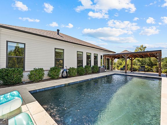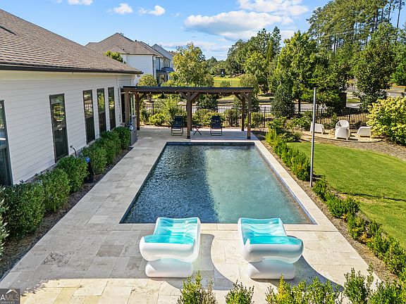 PRICE REDUCED TO SELL!!! Discover a rare ranch estate that blends timeless elegance with modern upgrades. Inside, expansive living areas open through French double doors, seamlessly connecting indoor comfort with outdoor luxury. Step outside to your fully automated saltwater PebbleTec pool, enhanced with dual in-pool LED lighting and surrounded by travertine decking-perfect for lively evenings or peaceful relaxation. Located in the highly sought-after Traditions neighborhood within the acclaimed Forsyth County school district, this home pairs modern luxury with unbeatable convenience. The main-level master suite boasts trey ceilings, dual vanities, a deep soaking tub, seamless glass shower, and spacious walk-in closet. Two additional bedrooms and a full bath provide both comfort and functionality. The gourmet kitchen features stainless steel appliances, double ovens, built-in microwave, quartz countertops, a large center island, custom walk-in pantry, and a butler's pantry with wine refrigerator. The open design flows into the family room with a cozy gas log fireplace and extends to a formal dining room, perfect for entertaining. Additional highlights include a three-car garage with epoxy-coated flooring, iron fencing, a climate-controlled sunroom with sliding doors and windows, and outdoor living spaces complete with a poolside cabana with projector screen and roller shades, built-in firepit, and garden area. Throughout the home, enjoy 10-foot ceilings, wide-plank hardwood floors, and trey ceilings in the entry and master suite. In the family room, an 85-inch Samsung Neo QLED TV with a pull-down mantel mount creates the ultimate cinematic experience. The HOA covers lawn maintenance and community amenities including clubhouse, swim/tennis, pickleball, playground, pond, fitness center, and sidewalks. Direct neighborhood access leads to the Forsyth Greenway and Fowler Park's 85-acre recreation center, with premier shopping and dining just minutes away at The Collection, Halcyon, and Vickery Village. Schedule your private tour today and experience this exceptional lifestyle!