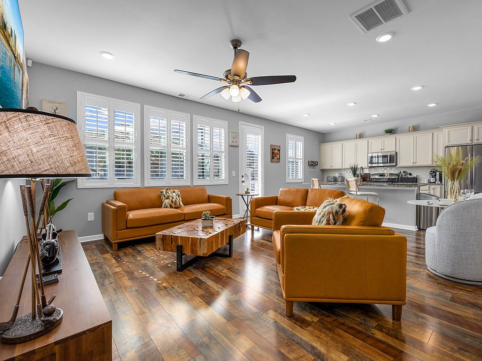 Unwind in the luxurious owner's suite, complete with an ensuite bathroom and expansive walk-in closet. The home is equipped with modern amenities including high-speed WiFi and air conditioning, ensuring a comfortable stay. Just a stone's throw away, the nearby golf course promises endless hours of entertainment for enthusiasts.