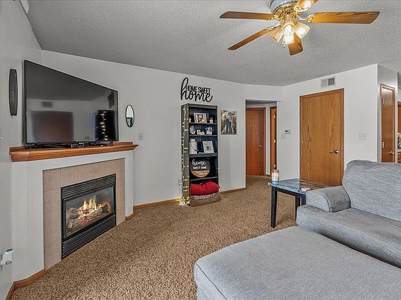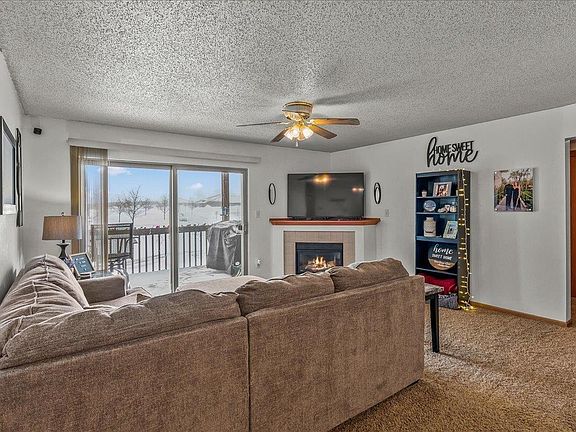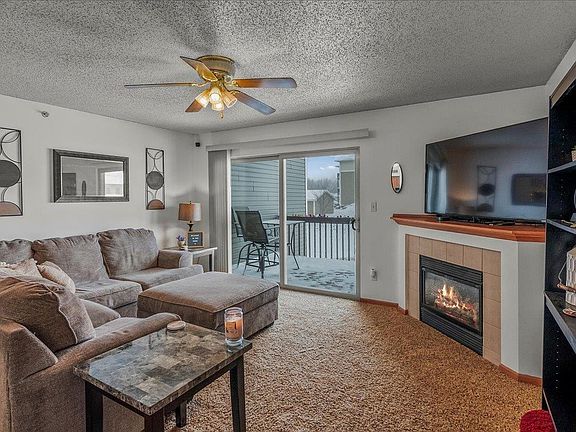 If you're looking for a hassle-free home in a great location, this is the perfect place for you! Upon entering this condo, you'll immediately notice the open-concept design that creates a welcoming and spacious atmosphere. The living room features large windows allowing plenty of natural light and a gas fireplace providing warmth and comfort on chilly evenings. The sliding glass door in the living room leads out to a balcony, offering the perfect relaxing place. The kitchen features new appliances and ample counter space, making meal preparation and organization a breeze. Moving through the condo, you'll find two well-proportioned bedrooms featuring spacious closets that provide much storage space. The bathroom is also generously sized and equipped with a bathtub and shower. Finally, the condo includes a convenient laundry area that makes doing laundry quick and easy. A key-coded door secures each building in the complex and comes with a single-stall garage located on the West side of the building. New A/C, Fridge, & Dishwasher.