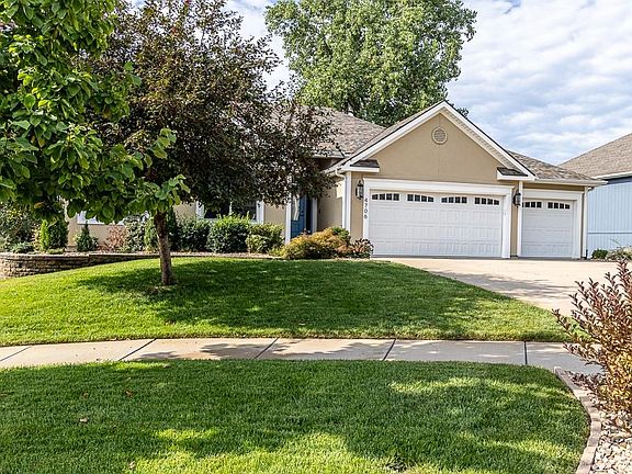 Lots to like with this two owner ranch style home in a popular subdivision. The front entry opens to a foyer with a coat closet and direct access to the large great room which is the focal point of the home with a vaulted ceiling, fan, gas fireplace, window blinds and hardwood flooring. The formal dining room has a lighted tray ceiling, attractive chandelier, and hardwood flooring. Additional informal dining is in the breakfast room which includes a wet bar and built-in desk. A patio door opens to the the outside deck with a great view of the beautiful back yard. The fully equipped kitchen has quartz counters, abundance of stained wood cabinets some with pullout drawers and all doors with soft close hinges, stainless appliances, and hardwood floor. The laundry room with tile floor includes a washer and dryer plus cabinets and a coat closet. The large 3 vehicle garage has door openers, and a special protective floor covering and lots of storage space. The home features three bedrooms starting with the primary which has a hardwood floor, tray ceiling, fan, custom blinds, newer Anderson windows, and a large walk-in closet beyond the primary bathroom. This private bathroom features quartz counters, double sinks, whirlpool tub, separate shower and tile floor. The 2nd full bath features a tub/shower combination, tile floor, and quartz vanity counter. Bedrooms 2 and 3 have wood floors, ceiling fans, newer Anderson Windows, and custom blinds. The walkout lower level has lots of windows, a half bath, workshop area and could easily be used for more bedrooms, or whatever the needs were. Outside is a large concrete patio area with a very private back yard. The entire yard has a sprinkler system plus an inground invisible dog fence. The roof is less than one year old. Gutter guards were recently added. On the roof are solar panels and they are generating power that results in very low electric costs. Oak Grove Elementary School, Bode Middle and Central High. Lots of extras.