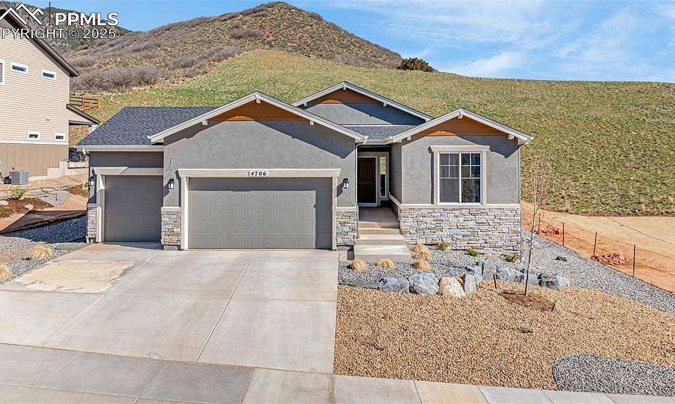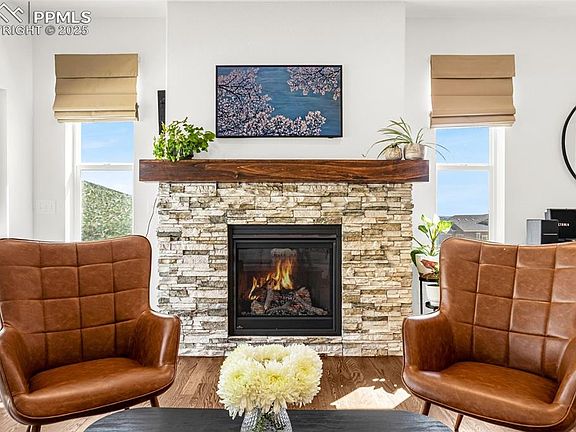 Welcome to this nearly new Sanibel II ranch-style home by Vantage Homes, located in the desirable Forest Lakes community. Built in July of 2024, this stunning property offers open-concept living with thoughtful upgrades added after construction for both comfort and style. The main level features a designer kitchen with an oversized island, abundant cabinetry, and seamless flow into the dining area and living room with a cozy fireplace. The upgraded laundry room includes a deep utility sink and custom cleaning pantry, and the main level also offers two bedrooms and two full bathrooms, including a spacious primary suite. The finished basement expands the living space with three additional bedrooms, a full bath, and a large rec room—perfect for entertaining, movie nights, or game tables. Post-construction upgrades include a built-in garage drop zone, elegant lighting fixtures, ceiling fans, central A/C, a hot tub with extended walkout patio, and a professionally landscaped yard with a smart irrigation system. Backing to open green space, the backyard offers privacy and a serene outdoor retreat. This home also enjoys the rare benefit of having only one neighbor, with the adjoining green space next door designated as open land that will not be built on. Forest Lakes residents enjoy private lake access, neighborhood hiking trails, and convenient I-25 access to Colorado Springs or Denver. Located in the top-rated Lewis-Palmer School District (D38), this home truly combines modern living, thoughtful design, and an unbeatable location.