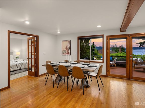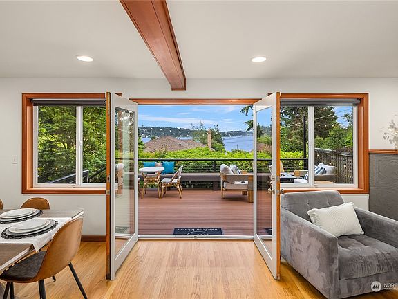 Experience privacy, views, and abundant spaces in this 2009 bespoke Hansen Architecture redesign. Welcome guests through your native PNW garden. Enjoy Lake + Cascade views from the main entertainment floor and especially from the upstairs primary + additional beds. 2bds/2bas on main floor, 3bds+den/2ba laundry upstairs. Basement has a bonus room and legal/permitted 1bd/1ba ADU, with kitchen, seperate laundry, and seperate entrance. Rhododendron-lined Boat/RV parking, fertile vegetable + fruit gardens, artificial lawn, and a 2yr new composite lake-view deck. 2 blocks from the Burke-Gilman Trail, near Matthews Beach Park, with easy commutes to Magnuson, UW, Wedgewood, Northgate, and I5/405. Within View Ridge Swim and Tennis Club boundaries!