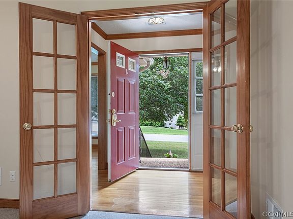 Rare opportunity in Rieves Point! Quiet and Mature Community so close to Chester and major commuter routes. Super cute 3 Bedroom 2 1/2 Bath Ranch style home with 2 car garage. Large kitchen with Breakfast nook adjoins the large family room in the center of the home. The open floor plan home is a split design with the Primary bedroom with ensuite on one side and the secondary bedrooms on the opposite side of the home. Interior of home has been freshly painted and there is new LVT in the laundry and ensuite, new Carpet installed in Primary, Family room, hallway and secondary bedrooms. The formal dining room and office off the foyer have hardwood floors and lots of natural light. Enclosed porch for added entertaining area. There is a 2022 Generac 22KW Whole House Generator. The 12x16 Tool house and LARGE, no, HUGE Attic gives you tons storage and potential expansion possibilities! The crawl space is encapsulated. The roofs on home and tool house were replaced in 2017 with Oakridge 3 dimensional shingles. Dryer hook up will accommodate gas or electric. Energy efficient return vents.