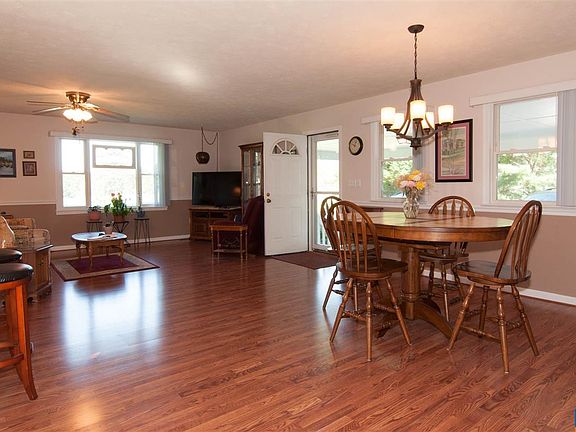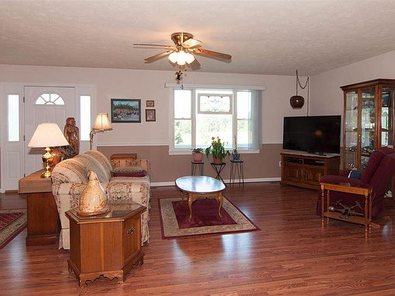 Not your cookie cutter ranch, very open floor plan with expansive great room and den. Great front porch and rear deck for enjoying the quiet and out doors, plenty of space for the pets, chickens or extensive gardening, two sheds to keep equipment and tools in. Many recent updates including new roof 2016, Heat pump 2016, paved driveway 2916 , vapor barrier and dehumidifier in Crawl, tile and laminate floors, composite deck , well pressure tank 2016. Just bring your suitcase and move right in to this perfect home with easy one level living. Great level yard with nice plantings and privacy but not isolated. Home buyers one year warranty included!
