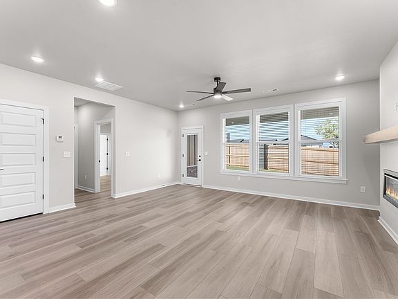 Fence, blinds and gutters included! Discover your dream home in the sought-after Osage Hills neighborhood. Emmet plan with garage on the left and East facing! 9 ft ceilings, linear electric fireplace in the living room, LVP flooring throughout the main living areas and primary bedroom, quartz countertops and more. Chef's kitchen boasting frigidaire stainless steel appliances, gas range, pantry, quartz countertops, bar pull handles and large island, all complemented by gorgeous backsplash. Luxurious primary bedroom features abundant natural light, while the spa-like primary bathroom offers a walk-in shower, tub, double sinks, and spacious walk-in closets. Additional features include a secondary bedroom downstairs, two large bedrooms upstairs and a separate laundry room. Nestled on a generous lot with covered patio that overlooks the serene sodded, fully fenced backyard. Sturdy concrete siding & brick! Model home located at 6008 SW Coywolf St- Lot 122.