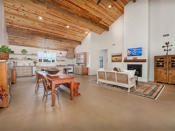 Vintage farmhouse sinkSplit floorplanWater softenerBuried propaneLow-e windowsDramatic soaring pine ceilingsCustom open pecan shelves