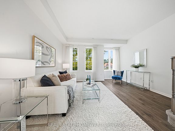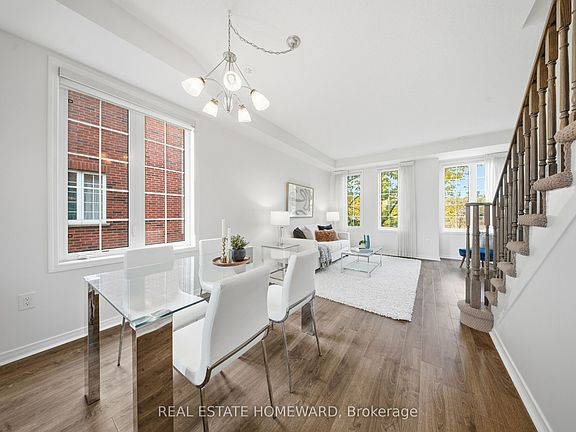 Welcome home to this lovely 3 bedroom, upper level, end unit townhome that feels more like a semi-detached! Spacious and sun filled, this home is freshly painted and move in ready with living and dining areas large enough to entertain or relax at the end of a long day. Large sunny breakfast area that can double as a home office opens up to the balcony with space to accommodate a BBQ. Primary bedroom is spacious and has a private ensuite. Amazing location with quick access to the 401 or into the city. For the nature lovers you are steps away from Megan Park, a 3 hectare walkable park with green space, bocce courts, and children's playground. Perfect for the young professional, new growing families, or downsizing retirees, this one's a 10 and move in ready!