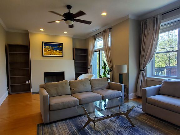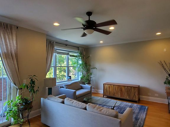 Beautiful, top floor 2 bed, 2 bath condo on a quiet tree lined street in historic Sheridan Park. Generous living spaces, front and back patios, gated parking spot included in rent. Central heat and air, washer/dryer in unit, recently updated stainless steel kitchen appliances, breakfast bar. Hardwood floors throughout. Master bedroom has a walk-in Elfa closet and a marble bath with dual vanities and separated tub and shower. Close to the Wilson and Lawrence red line stops, Ravenswood Metra, multiple bus lines, Chase Park (pool, tennis courts, community garden, running track). Walk to many coffee shops and restaurants.