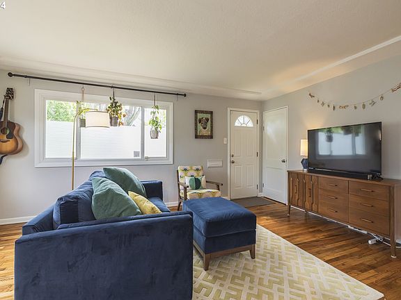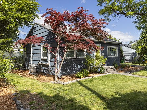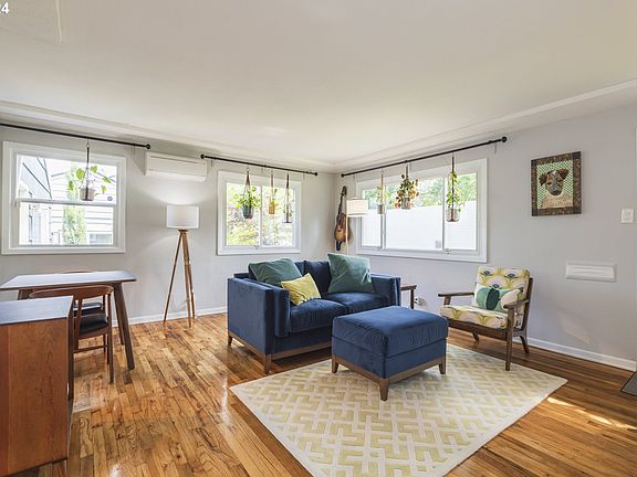 The bright yellow front door is the perfect portal into a happy house. No one does adorable like a 1940s cottage and this Cully cottage does not disappoint! With minimal eaves to maximize sunshine, these houses are Portland's sunniest. Lovely trayed ceilings and original hardwood floors in the living room and the arched doorway and arched cut-out connect the kitchen to the main living space while keeping that important separation that helps small square footage live large. Brand-new mini-splits are good for the environment and your pocketbook - you will never be cold or hot again! A classically handsome updated bathroom, a surprisingly spacious primary and an extra deep garage ready to spring into action as a gym, studio, storage central or room to expand your living space. All on an oversized lot with a sunny backyard, with room for those urban farming dreams to become reality. Chickens, bees or even an orchard - dream big! [Home Energy Score = 8. HES Report at https://rpt.greenbuildingregistry.com/hes/OR10229499]