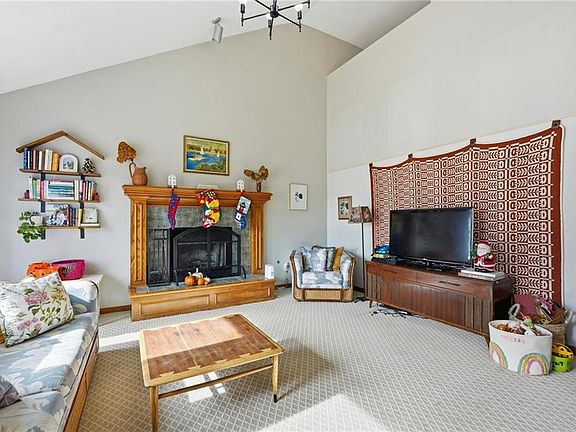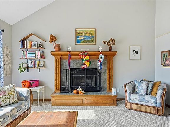 Welcome to this inviting split-level home offering both comfort and functionality! The exterior features a classic design with updated appeal, complemented by a new roof (2024) for added peace of mind. Step inside to find a spacious, light-filled living room with a vaulted ceiling, cozy fireplace, and ample room for entertaining or relaxing. The kitchen and dining area offer plenty of space to gather, featuring wood cabinetry, an island, stainless steel appliances, and a large eat-in area with access to the elevated deck overlooking the fenced backyard — perfect for outdoor enjoyment. Upstairs, the primary suite includes a walk-in closet and an en-suite bathroom with double sinks, a soaking tub, and great natural light from a skylight. Two additional bedrooms provide flexibility for guests, family, or office space. The finished lower level expands the living area, ideal for a recreation room or home office setup, and includes a half bath for convenience. Laundry is located on the main level. Outside, the fenced yard features a deck with built-in play area and slide, offering both relaxation and recreation opportunities. Additional updates include a new water heater (2025). This home combines functionality, charm, and thoughtful updates — ready for its next chapter!