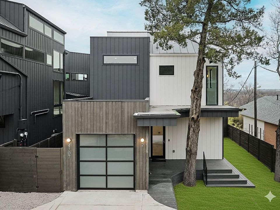 NO HOA Dues & Free Standing. Experience the ultimate in modern living with the Eastside Skyline Retreat, offering sublime SKYLINE VIEWS in one of the Eastside's most sought-after areas. Standouts include a spacious, private front and side yard for extended outdoor living. Built in 2025, this contemporary home exudes a treehouse ambiance with privacy and abundant green spaces. Discover a meticulously designed floor plan featuring 2 bedrooms, 2.5 bathrooms, and an open-concept living, dining, and kitchen area on the treetop level, with interiors by BB Design. Expansive picture and casement windows flood the space with natural light, while light hardwood floors, designer tiles, and high-end fixtures merge with airy textures and natural elements. Customized features include a spacious banquette dining area, a built-in workstation, and custom window treatments with automated shades. The chef's kitchen is both spacious and functional, boasting a large center island, floating shelves, and premium appliances. The entire upper level offers stunning views of Austin's skyline, with large sliders that open to a spacious balcony with glass railings for unobstructed views. The bedrooms are discreetly located on the lower floor for privacy. The use of natural and intentional materials throughout the home evokes a serene, Scandinavian vibe. Every detail, from the versatile one-car garage offering a variety of uses to the inviting front porch and grassy front and side lawns, has been thoughtfully curated. Just moments from Springdale Green, Austin Bouldering Project, Micklethwait Craft Meats, Palomino Coffee, and many local favorites, this unique hideaway provides the perfect location close to the urban core, yet feels like a serene nature retreat. As a bonus, this home is available for purchase fully furnished if desired, offering a seamless transition for busy buyers, investors, pied-a-terre seekers, or those looking for a second home. *Taxes are estimated- buyer to verify.*