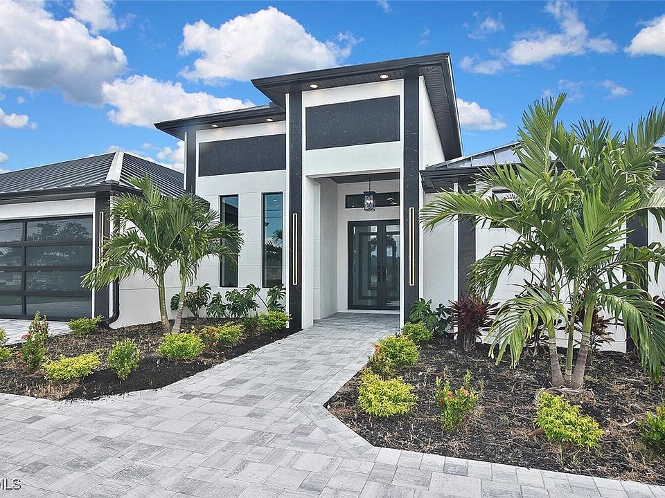 COME AND PICK YOUR COLORS at this high-end luxury home on an intersecting GULF ACCESS canal near Cape Coral PKWY. Completion will be Q1 of 2026. When you walk into this home you're being welcomed by a pristine porcelain floor and an open floor plan with a ballroom size living area. This home is the epitome of luxury and design, take a look at the very special water vapor fireplace and all high- end amazing light fixtures. There is an integrated blue tooth sound system with indoor and outdoor speakers. The office has this amazing luxury feel and warmth with structured wallpaper. The whole home is equipped with double pane hurricane impact sliders and windows for extra insolation and 90 degree corner slider doors to the lanai. The well thought out designs of the XXL pool spa with infinite edge look will give you the waterfront Florida living style. We have a grey metal roof that will keep you and your family safe whatever happens. The outdoor kitchen has a black BBQ grill and black cabinets doors that will not rust as all the chrome ones do, the designer thought about everything to make this home stand out compared to anything else out there with all these high-end upgrades. The outdoor kitchen also has an outdoor refrigerator to keep your wine and beverages nice and cold right next to the pool. Take a look at the hidden walk-in kitchen pantry with a lot of extra storage space and a bar with another refrigerator. A luxury kitchen with top of the line appliances with Taj Mahal quartz countertop and waterfall edges it's a chefs dream kitchen. A separate wine cellar for 18 bottles. And ALL ASSESSMENTS are paid in full. Pictures are from a home that's already finished at 2541 Surfside Blvd.