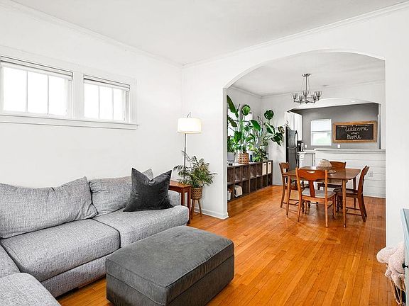 Welcome to this charming 3-bedroom, 1-bathroom home, perfect for those seeking comfort and style. As you approach, you'll be greeted by an inviting front porch, ideal for relaxing and enjoying the neighborhood's tranquility. Step inside to discover high ceilings and beautiful hardwood floors that flow seamlessly through the living room and into the formal dining space. The updated kitchen and bathroom offer modern conveniences, while the spacious master bedroom comfortably accommodates a king-sized bed. Adjacent to the master is a versatile nursery bedroom, perfect for a home office, complete with built-in shelves providing ample storage and a cozy library nook. Upstairs, a very large loft bedroom offers plenty of space for various needs. The lower level boasts a massive second living area, ideal for entertaining or family gatherings, along with a utility room for added convenience. Outside, enjoy the quiet block from your back deck, and take advantage of the two-car parking pad. This home is a perfect blend of charm, modern updates, and functional space. Don’t miss your chance to make it yours!