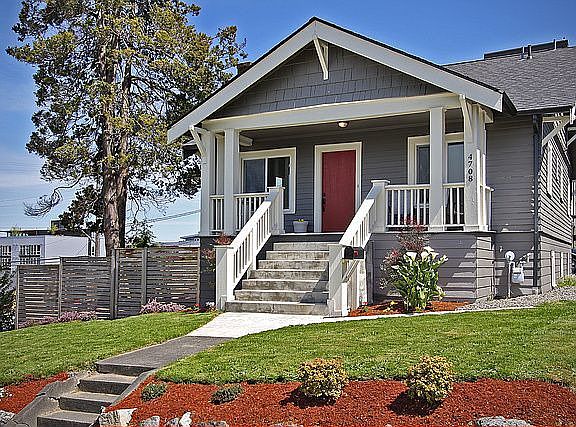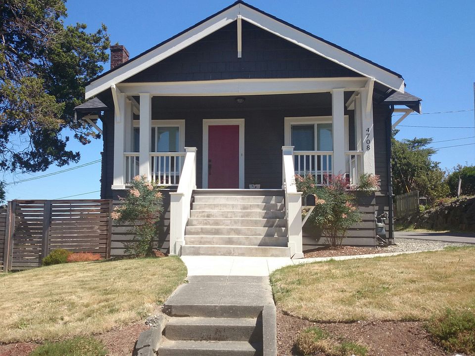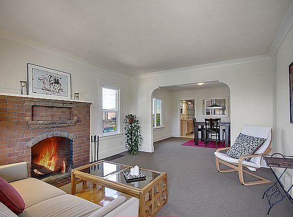Fabulous 1919 View Craftsman, walk to Alaska Junction! Fine updates with original charm intact. City skyline views from dining, kitchen & master. Beautiful private garden with covered arbor & hot tub. Living room with brick fireplace, large formal dining. Updated kitchen w/ vaulted ceilings, cool media/reading room. Vaulted ceiling in romantic 2nd floor master with walk-in and 3/4 bath. Large guest bedroom. Huge potential in unfinished bsmt. High walk score. 1 car parking pad on E side of home.