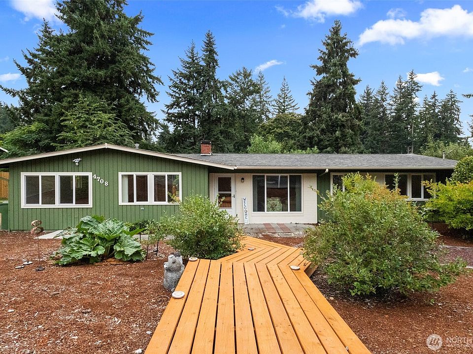 Welcome to this beautiful single-story home featuring three bedrooms, a family room, and a multi-purpose room that opens to a new deck. Fully fenced backyard—perfect for entertaining, unwinding, or gardening. Inside, enjoy a bright, sunlit room complete with a cozy fireplace. Newly installed walk-in shower for an open and spacious look. Freshly painted interior and exterior. Updated laminate flooring to match the warmth and beauty of the original hardwood floor. Newly constructed front deck, RV parking, and electric hookup. Located in a well-kept neighborhood and close to beautiful Chambers Bay. With full price offer, Seller agrees to complete asphalt driveway before closing.