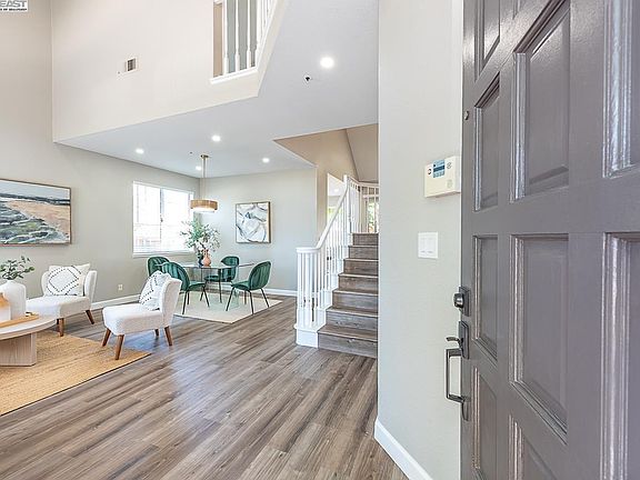 A gorgeous contemporary style KB home located in the desirable California Gallery community. Tastefully remodeled with the finest, high-end finishes embodying sophisticated living and classic design. Enter through large double doors where you are welcomed by a bright and open floor plan. A spacious formal living and dining room magnified by tall picturesque windows, high soaring ceilings all while being immersed in natural light. A brand new gourmet kitchen offers a center island and opens to the family room which offers even more living space. Spacious bedrooms and fully remodeled bathrooms exuding the utmost style and sophistication. The custom primary bath with barn door opening includes floor to ceiling porcelain tile and a large walk-in, rainfall shower. A charming backyard retreat with a private deck, lush grass, colorful flowers and mature trees. Located on a premium corner lot with an expansive backyard space - perfect for entertaining and future expansion. Prime location with easy access to I-880/84/92, BART, Coyote Hills, Alameda Creek Trail, Union Landing and major employers of the Bay Area. Served by the #1 Delaine Eastin Elementary.