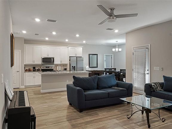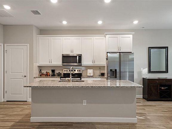 Built in 2022, this nearly new home offers over 2,500 sq ft of modern living with no HOA in a highly desirable South Lakeland location. Convenient access to Polk Parkway Exits 5 and 7 provides easy commuting. The home features 3 bedrooms, 2 bathrooms, and a spacious office that can serve as a 4th bedroom. The open-concept kitchen showcases a large island with wet bar, granite countertops, soft-close cabinetry, and waterproof luxury vinyl tile flooring throughout. The primary suite includes dual walk-in closets, a walk-in shower, and private water closet. Additional highlights include a hip roof for potential insurance savings, a fenced backyard with covered lanai, and proximity to Lakeside Village, George Jenkins High School, and multiple private schools.
