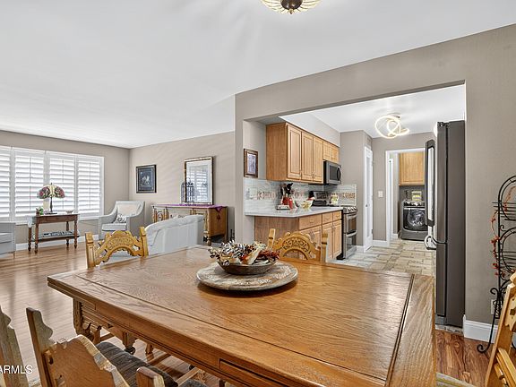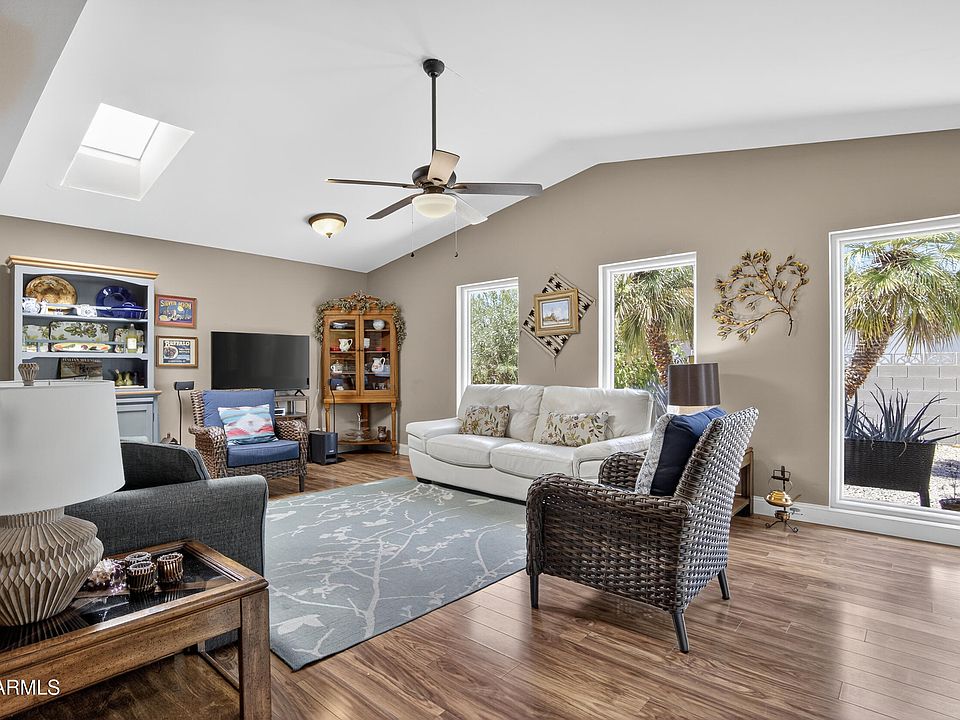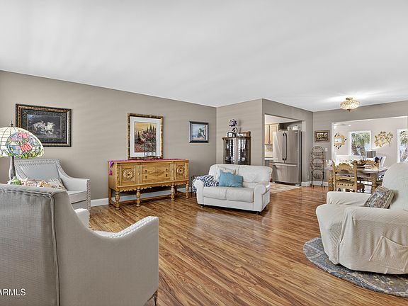 If you're looking for a beautifully updated home in a vibrant welcoming community, Sunland Village is the perfect place for you. This wonderful property is conveniently located just blocks from the clubhouse, activity center, restaurant & golf course. The owner loved to cook & designed an ideal kitchen w/upgraded appliances, elegant custom cabinetry, stylish counters & backsplash, enhanced by exquisite flooring. As you move through the home, the spacious living & dining areas seamlessly connect to a charming Az Sunroom, an wonderful setting for hosting friends or enjoying a quiet morning w/your coffee. When you step outside to the backyard, you'll find two patio areas surrounded by greenery and citrus trees. Sunland Village is a fantastic community w/ amenities; tennis courts . . . a fitness facility, paddleball, swimming pools, spas and a variety of activities to enjoy all year round.