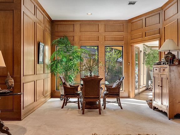 Fireplace centerpieceBackyard patioPrivate charmHigh ceilingsWood floorsExpansive windowsFormal dining room