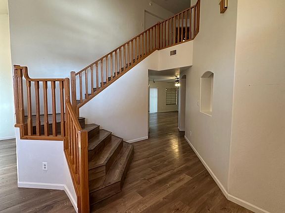 Barkley Ranch Pool Home! Beautiful 2 story, 4BR, 3 BA & 3 Car Garage with Pool. Kitchen is spacious with granite counters, large pantry and stainless steel appliances. Spacious family room with fireplace. One of the bedrooms is downstairs and 3 bedrooms upstairs, including the primary bedroom. Jack and Jill bathroom for 2 of the bedrooms and primary bathroom with 2 sinks and walk in shower. Large lot measuring about 12,000 sq feet with double gates for your toys, citrus trees and plenty of shade.