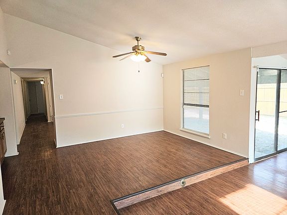 Single Story Home in Arlington just North of I20. Very nice single story home with vinyl plank flooring throughout. The front of the home has a step down into a good sized living area with a fireplace. The formal dining is open to this living area and there is good cabinet space for wet bar or extra storage. The kitchen is square and can accommodate a dinette table. The bedrooms are split with the master on one end and other 2 off the hallway. The 2nd bedroom is overly large and there is a shared bath between the two bedrooms. There is a covered patio off the kitchen and the yard is fenced. No Dogs allowed. TXR app. Income needs to be 3x monthly rent, good rental and no bad in last 5 years. Renters insurance required.