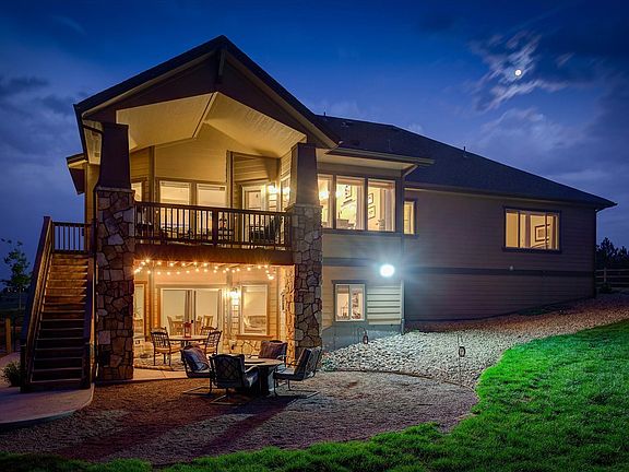 This spectacular property presents beautiful quality throughout! Features a gourmet kitchen w/ slab granite, large island, antiqued white cabinetry, stainless steel appliances & breakfast nook. The kitchen is open to a dramatic vaulted great room w/ a beautiful stone gas-log fireplace & wood mantle. The main level has a flex room that can be utilized for a formal dining room or study w/ French doors. The master suite includes a 5-piece bath w/ walk-in closet. Additionally, you'll find 2 bedrooms w/ walk-in closets, a full bath w/ dual sinks, a powder bath & a laundry/ mud room. Upstairs is an additional bedroom & full en-suite. The walk-out bsmt is beautifully finished featuring a large rec room w/ home theater, amazing wet bar, a large gym, 3/4 bathroom, a flex room & plenty of storage. Enjoy the stunning Colorado sunsets on the covered deck. The home has gorgeous landscaping & a spacious yard w/ several trees. Additionally, this home has an over-sized 3 car garage & central a/c.